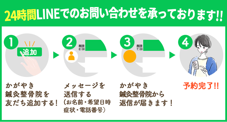 迷いなく「NO!」と即答できたのであれば、今すぐ「かがやき鍼灸整骨院」へご連絡ください。