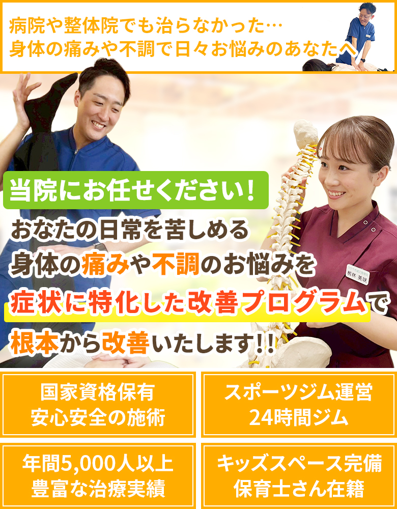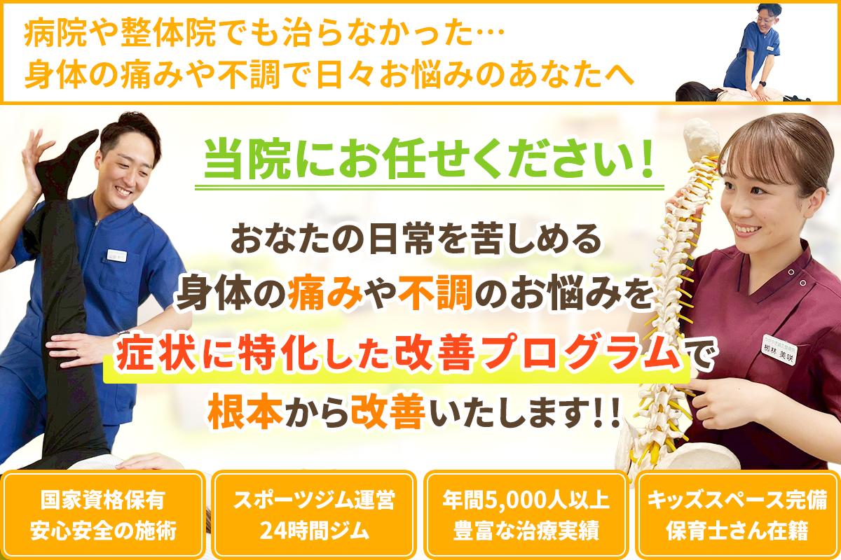 当院ではそれらの原因を特定し、どのような症状でも諦めずにしっかりと改善させてまいります。